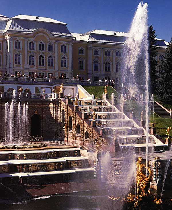 Большой дворец в Петергофе и Большой каскад фонтанов с фонтаном Самсон.