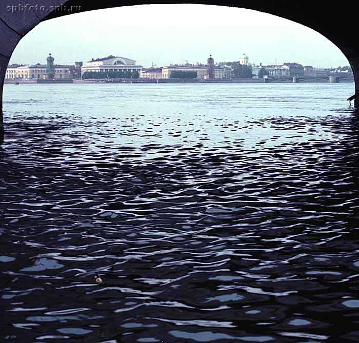 Вид на стрелку Васильевского острова из-под Троицкого моста.