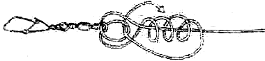 Примерно в 15—20 см от конца лески завяжите узел-восьмерку.